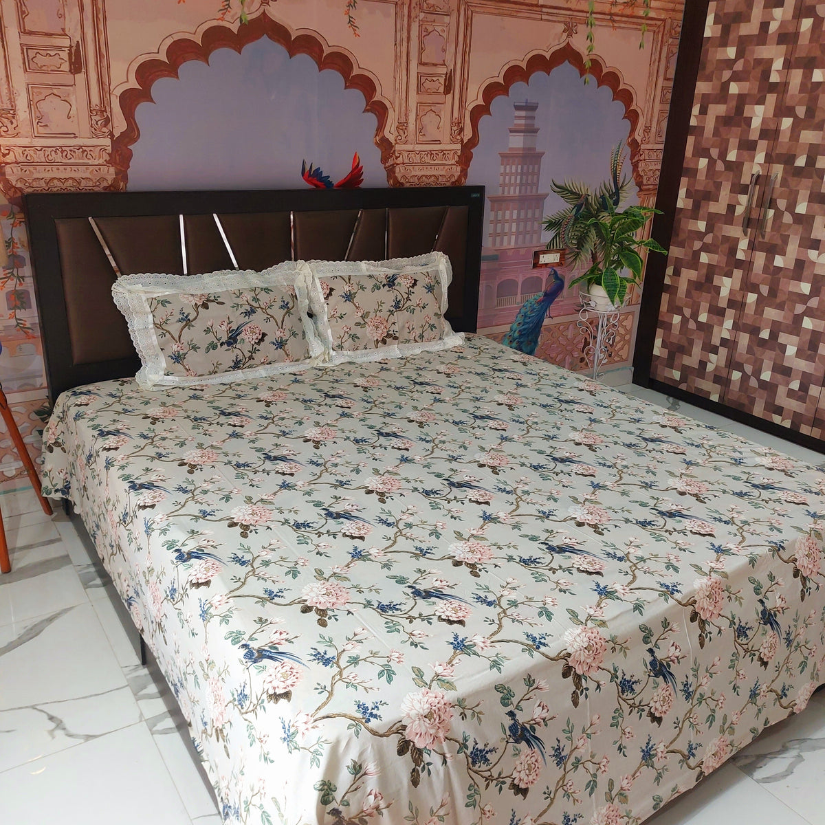 Birds Serenity - Lace Designed Pure Cotton Bedsheet Set