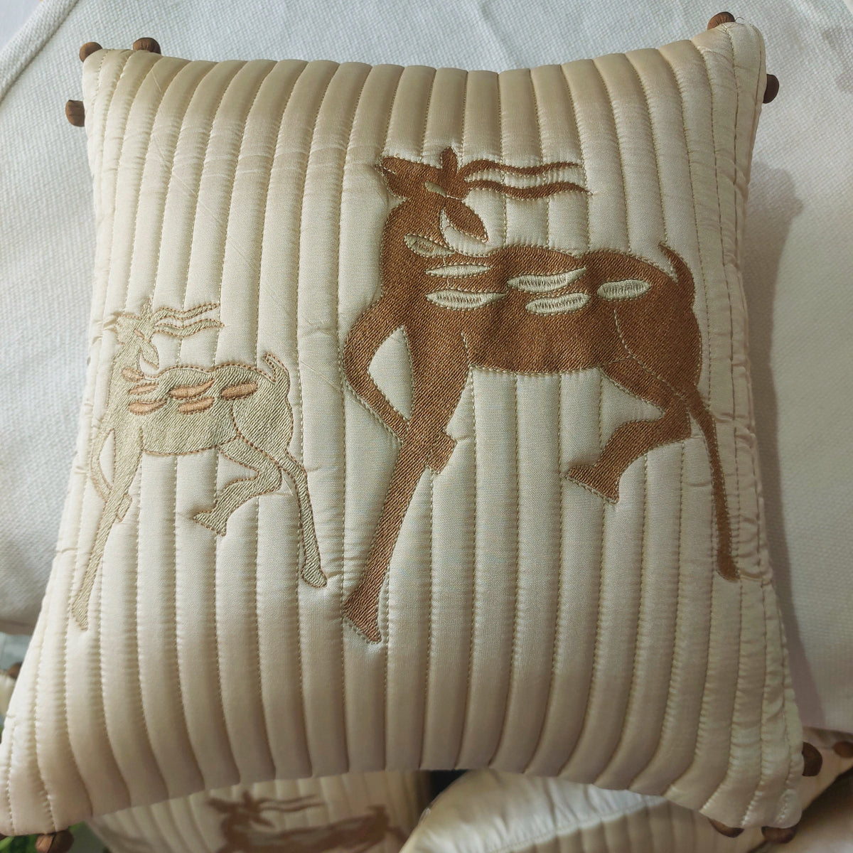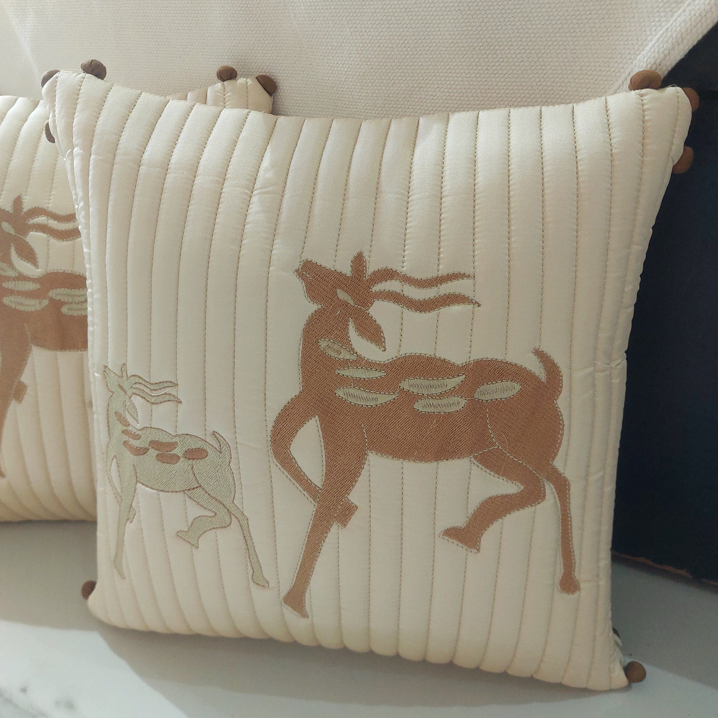 Ivory Gold Deer - Set of 5 Embroidered Silk quilted Cushion Covers