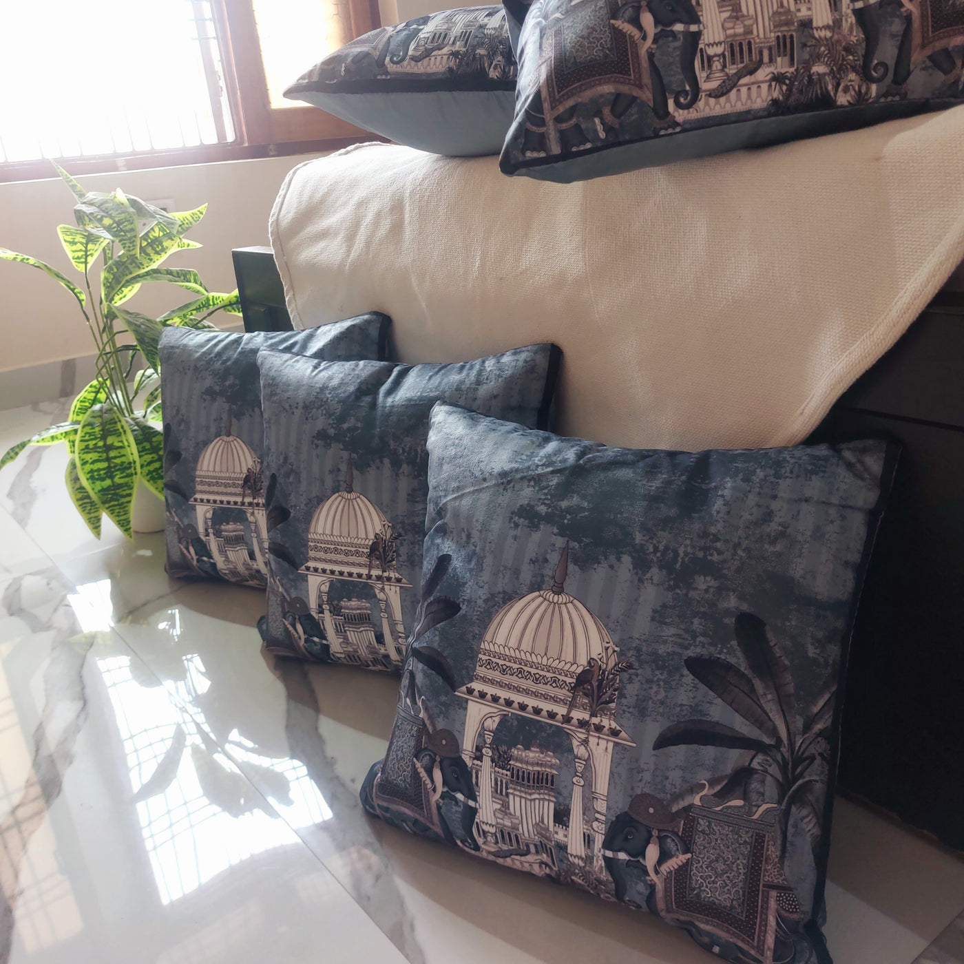 Grey Royal Elephants - Set of 5 Seude Cushion Covers