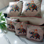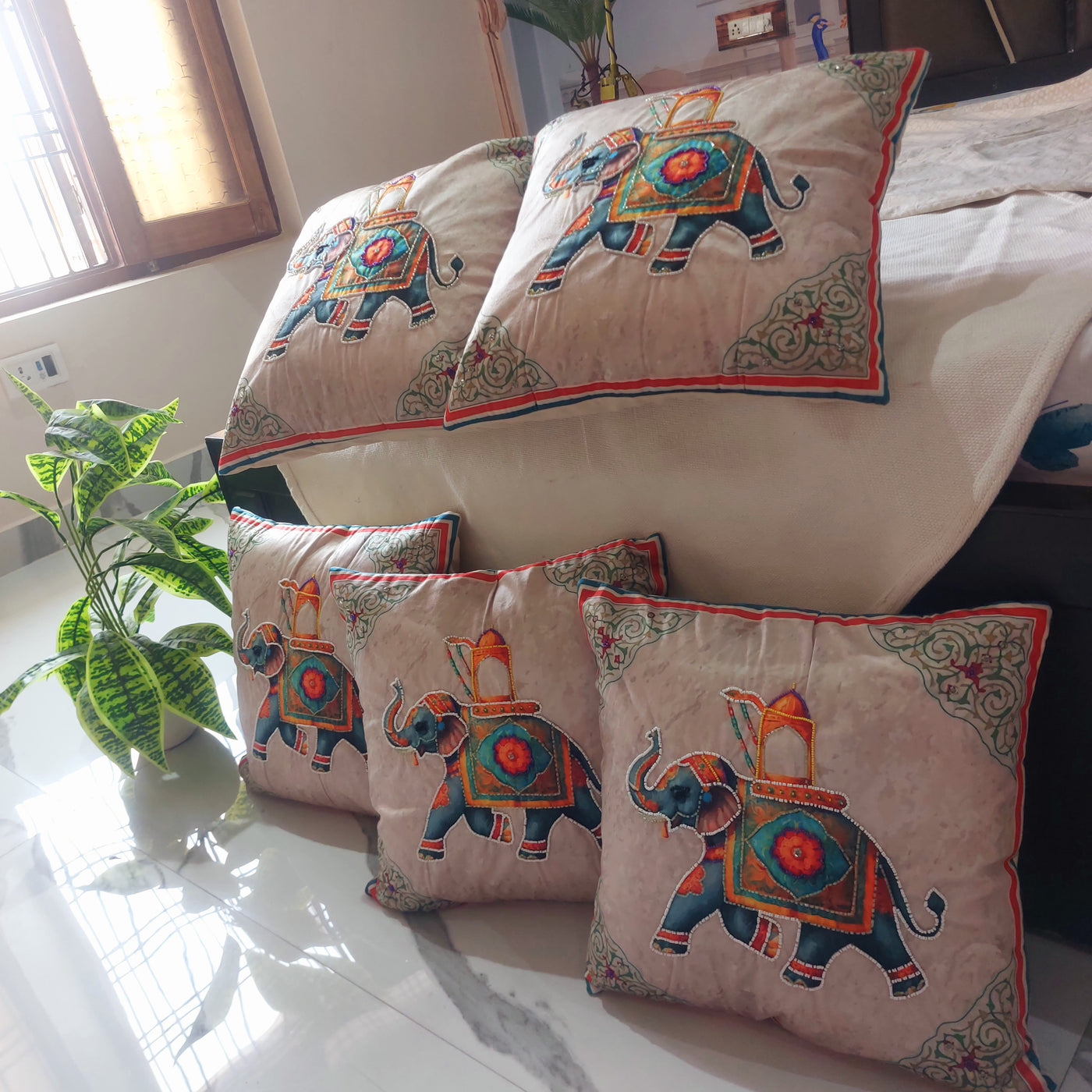 Pearl Embroidered Royal Elephant - Set of 5 Seude Cushion Covers