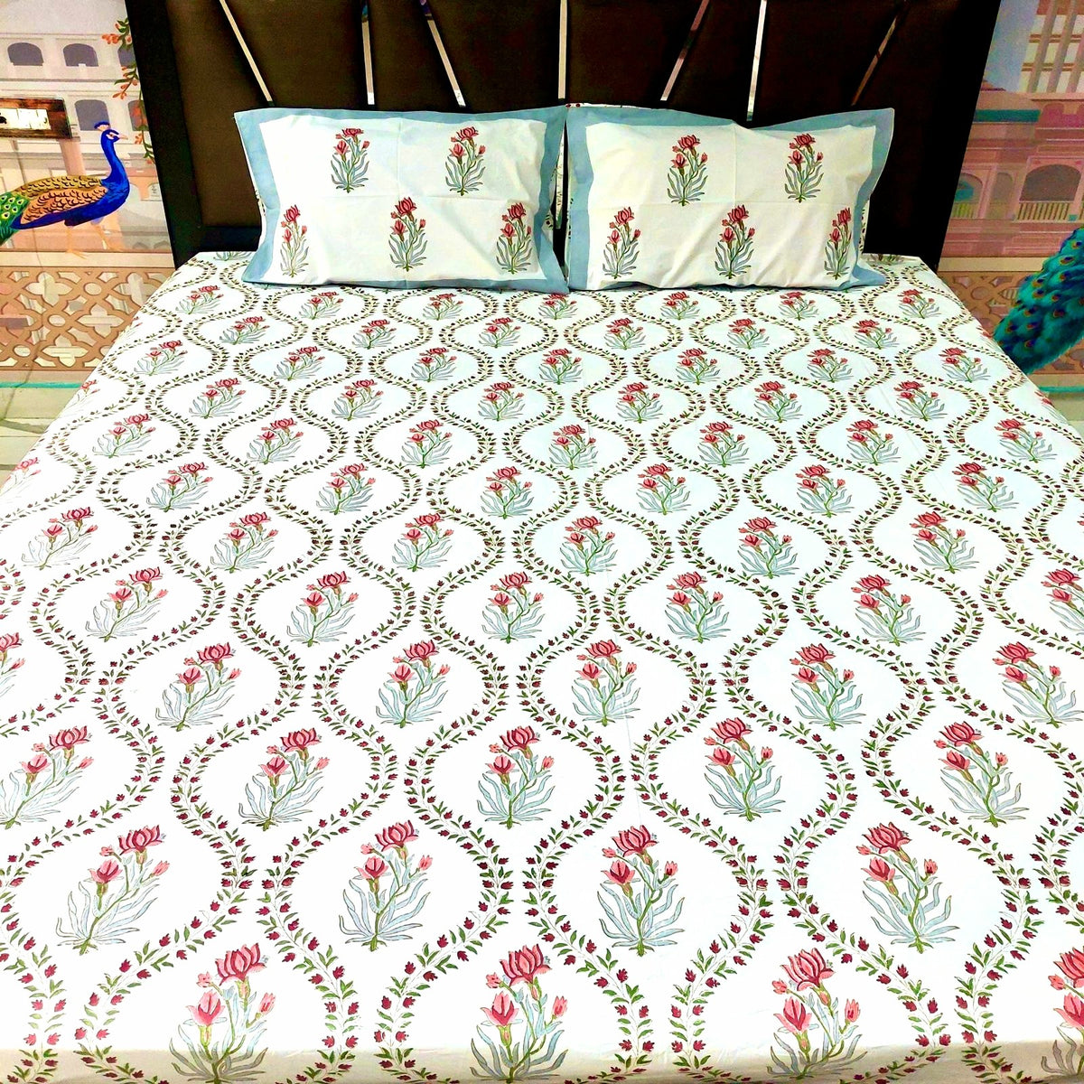 Indulge in the Lotus Wave bedsheet, made from percale cotton for a crisp, breathable touch. Its intricate lotus pattern adds a sophisticated, serene elegance to your bedroom.